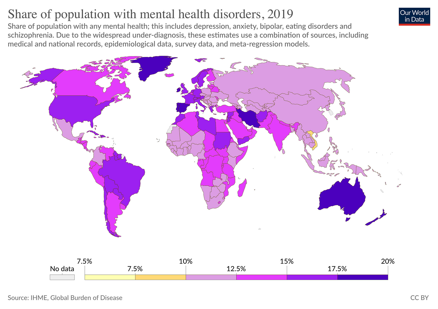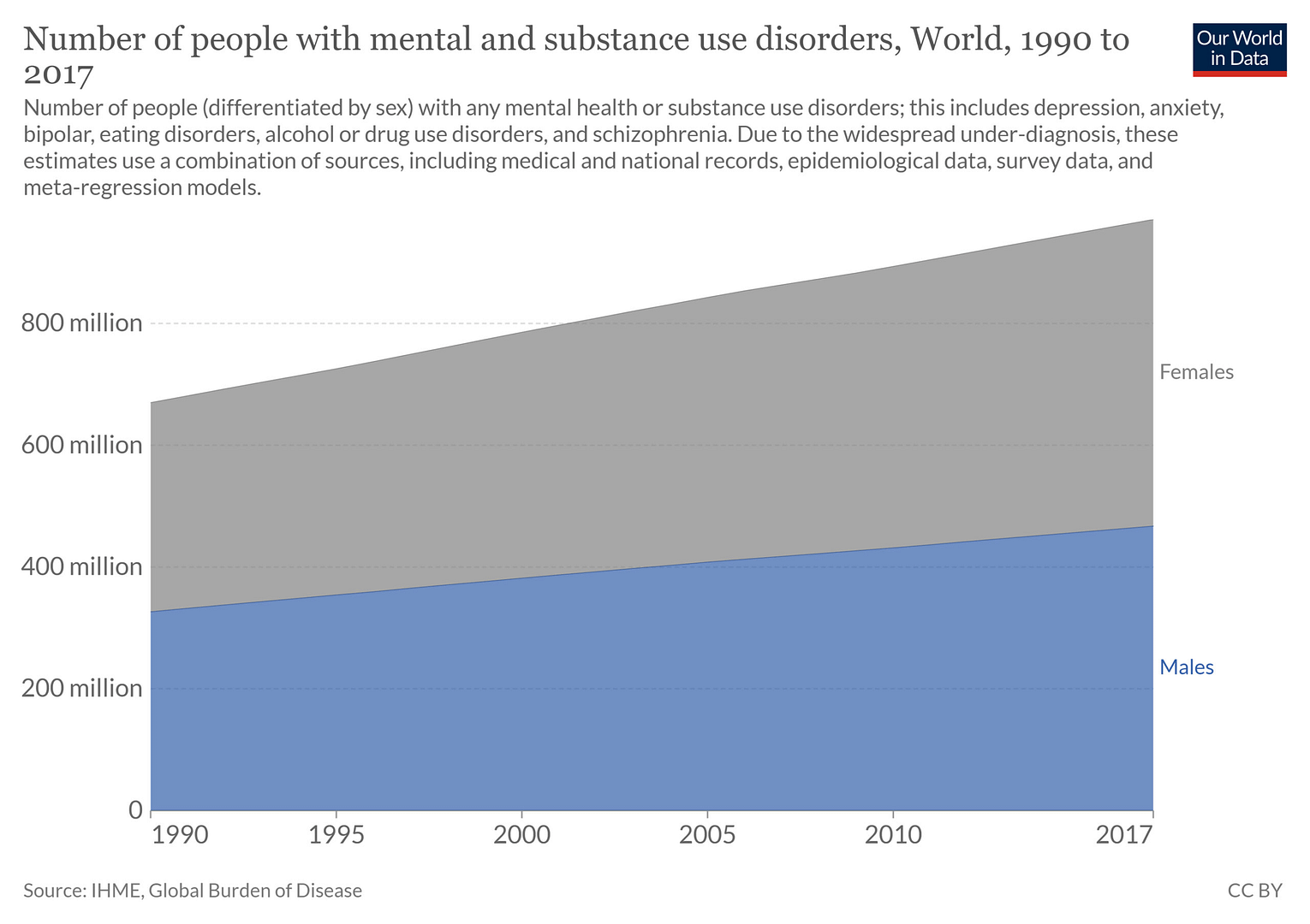 1. About 15% of the world’s population, or 970 million people, suffer from mental disorders.
